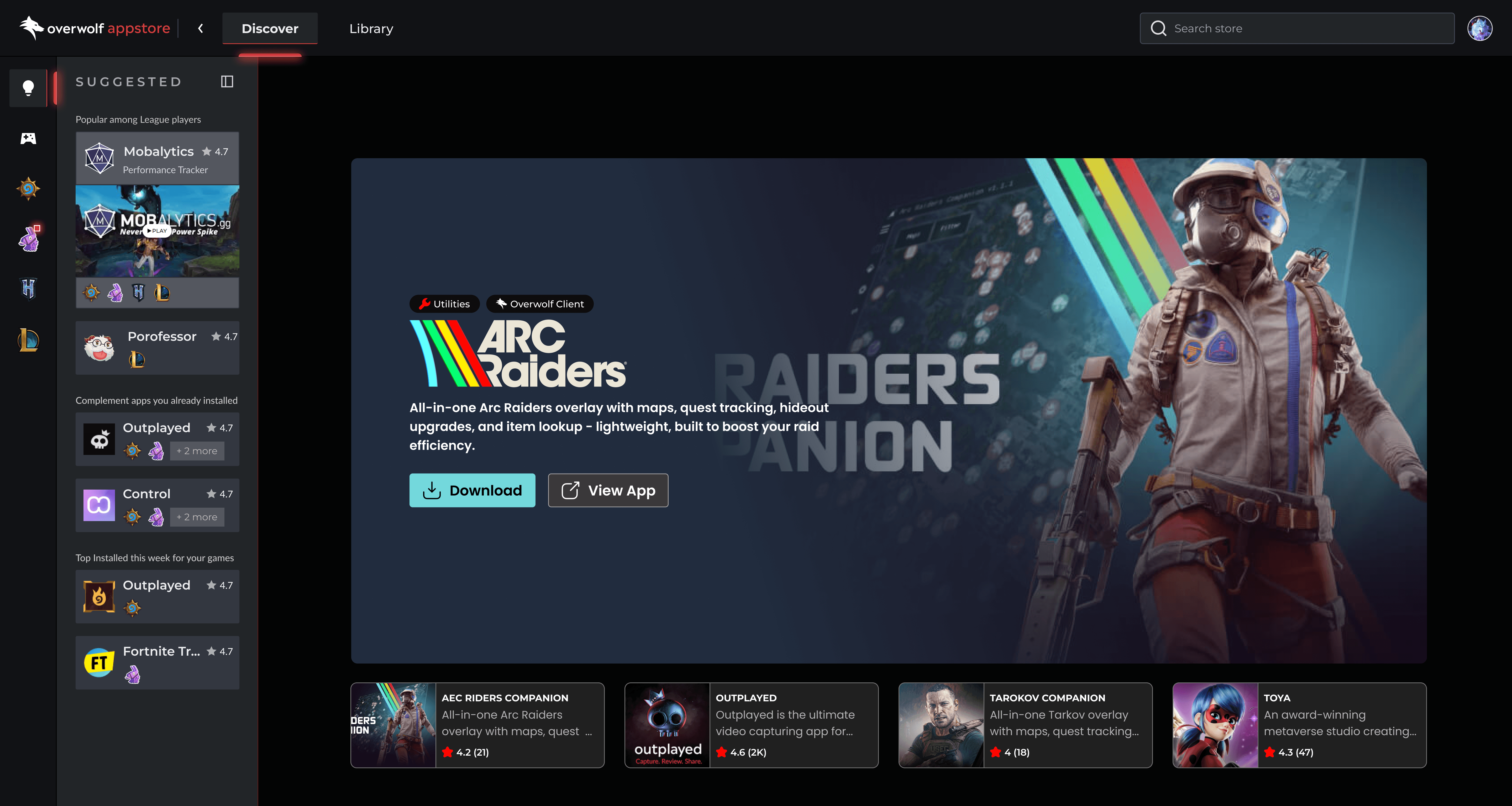 Overwolf Appstore is a desktop-first marketplace for discovering and managing in-game companion apps.